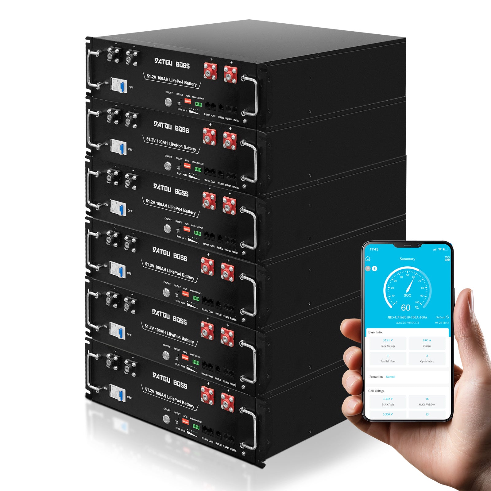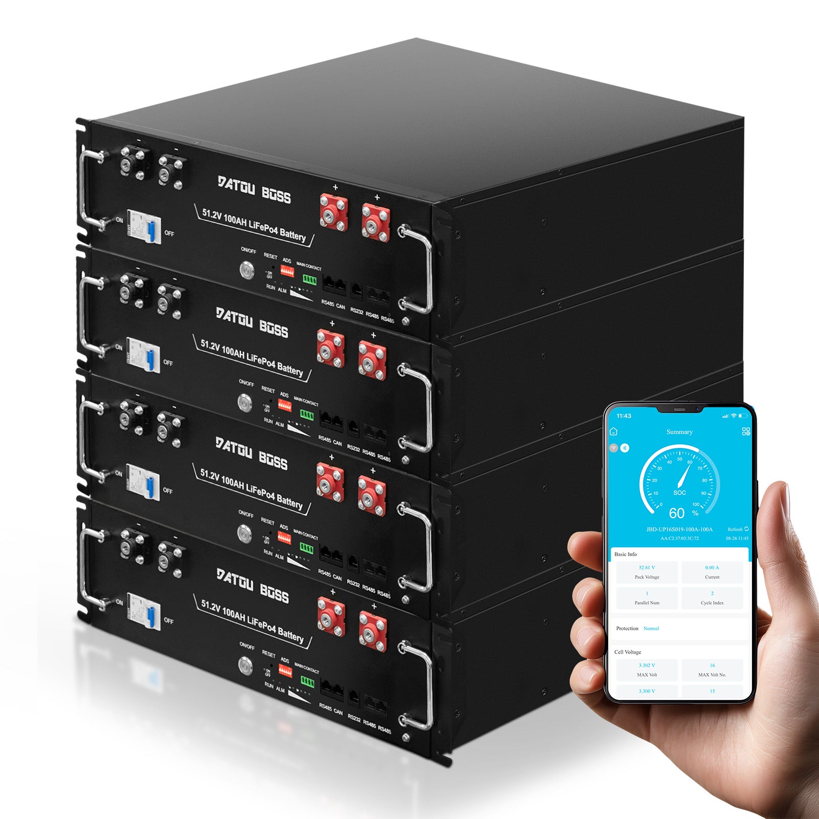 DATOUBOSS 51.2V 100Ah Lithium LiFePO4 Battery with 200A BMS Deep Cycle Battery for DIY RV Car Solar Home System