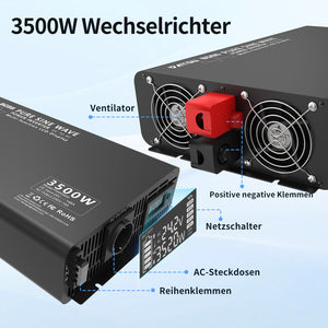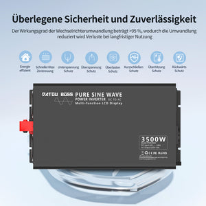 DATOUBOSS 3500W Pure Sine Wave Inverter, 24V to 230V AC Voltage Converter, Peak Power 7000W with 1 EU Plug, LCD Display and Radio Remote Control for Trucks, Motorhomes, Home, Camping, Household