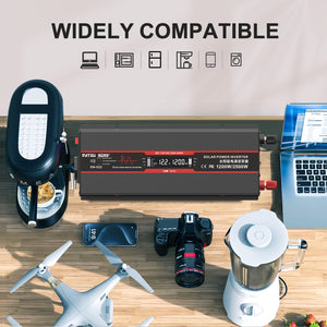 DATOUBOSS 1200W Pure Sine Wave Inverter, 12V to 230V AC Car Power Converter, Peak Power 2500W with EU Sockets, USB Ports and LED Display for Household Appliances, Car, Caravan, Truck
