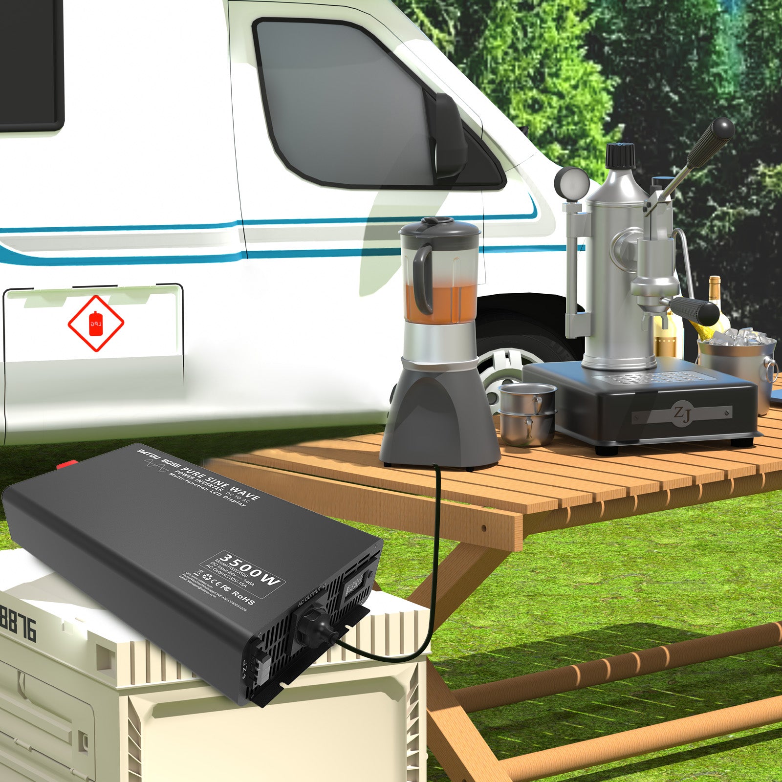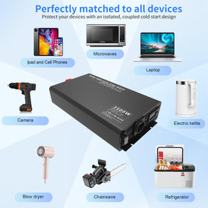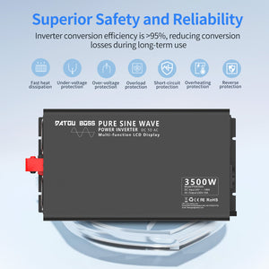 DATOUBOSS Onduleur à onde sinusoïdale pure 3500 W, convertisseur de tension 24 V à 230 V AC, puissance de crête 7000 W avec 1 prise UE, écran LCD et télécommande radio pour camions, camping-cars, maison, camping, ménage