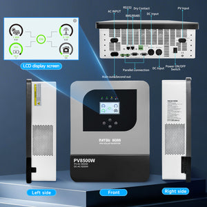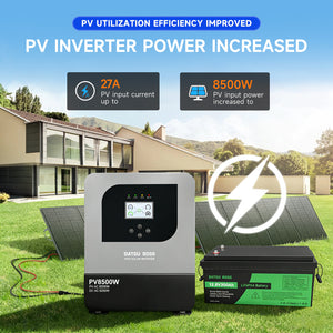 DATOUBOSS Convertitore Solare Ibrido da 6200W a Onda Sinusoidale Pura da 48VDC a 230VAC con 120A MPPT, Ingresso Fotovoltaico da 8500W, Supporta Senza Batteria, Sistema di Protezione BMS, per Batterie al Litio da 48V