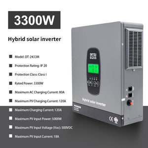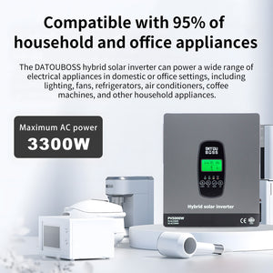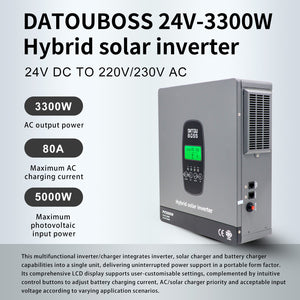 DATOUBOSS 3300W Hybrid Inverter 24V, Hybrid Solar Inverter On Grid, Supports Battery-Free Operation, 24V DC to 220/230V AC, BMS Protection System, with 150A MPPT for 24V Batteries(Compatible with WiFi 06)