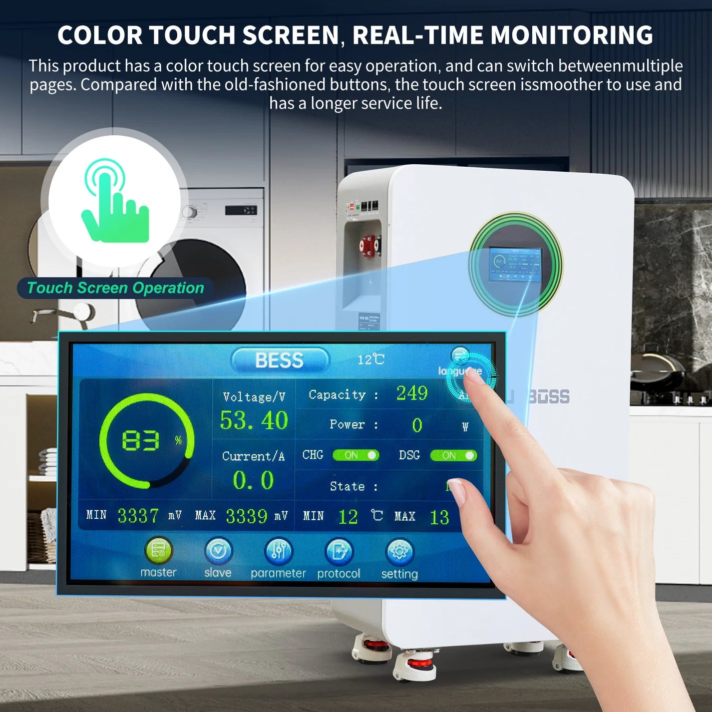DATOUBOSS 11KW 48V Hybrid Solar Inverter for on/off-grid use, supports battery-free operation. Features 150A MPPT charger and BMS protection for 48V batteries