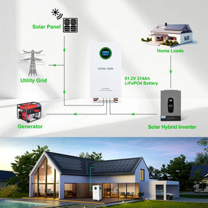 DATOUBOSS 48V 314Ah LiFePO4 Battery with 210A BMS + 48V 11KW Hybrid Inverter with 150A MPPT + WiFi Module for High-Capacity Solar Storage, RV, and Home Energy Systems