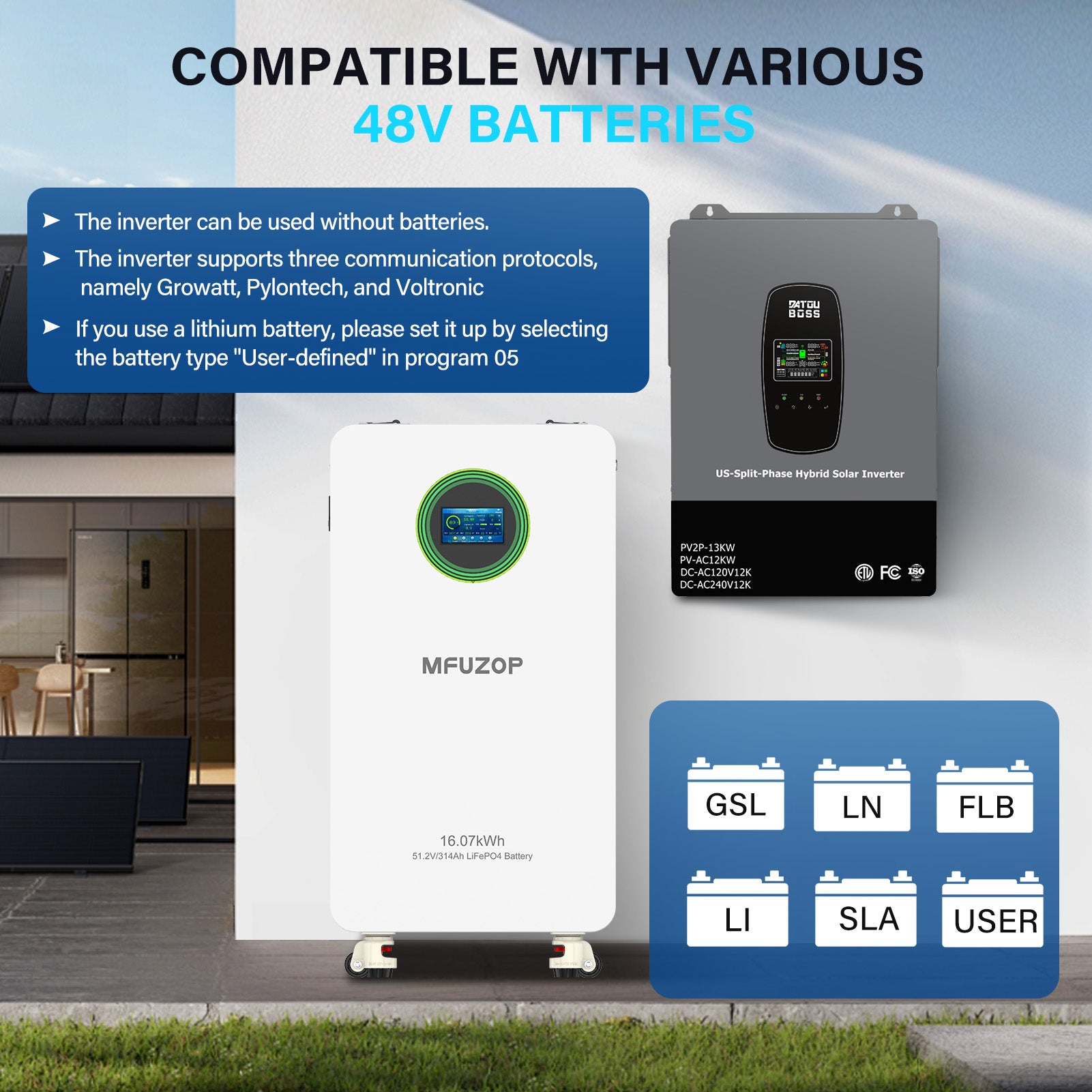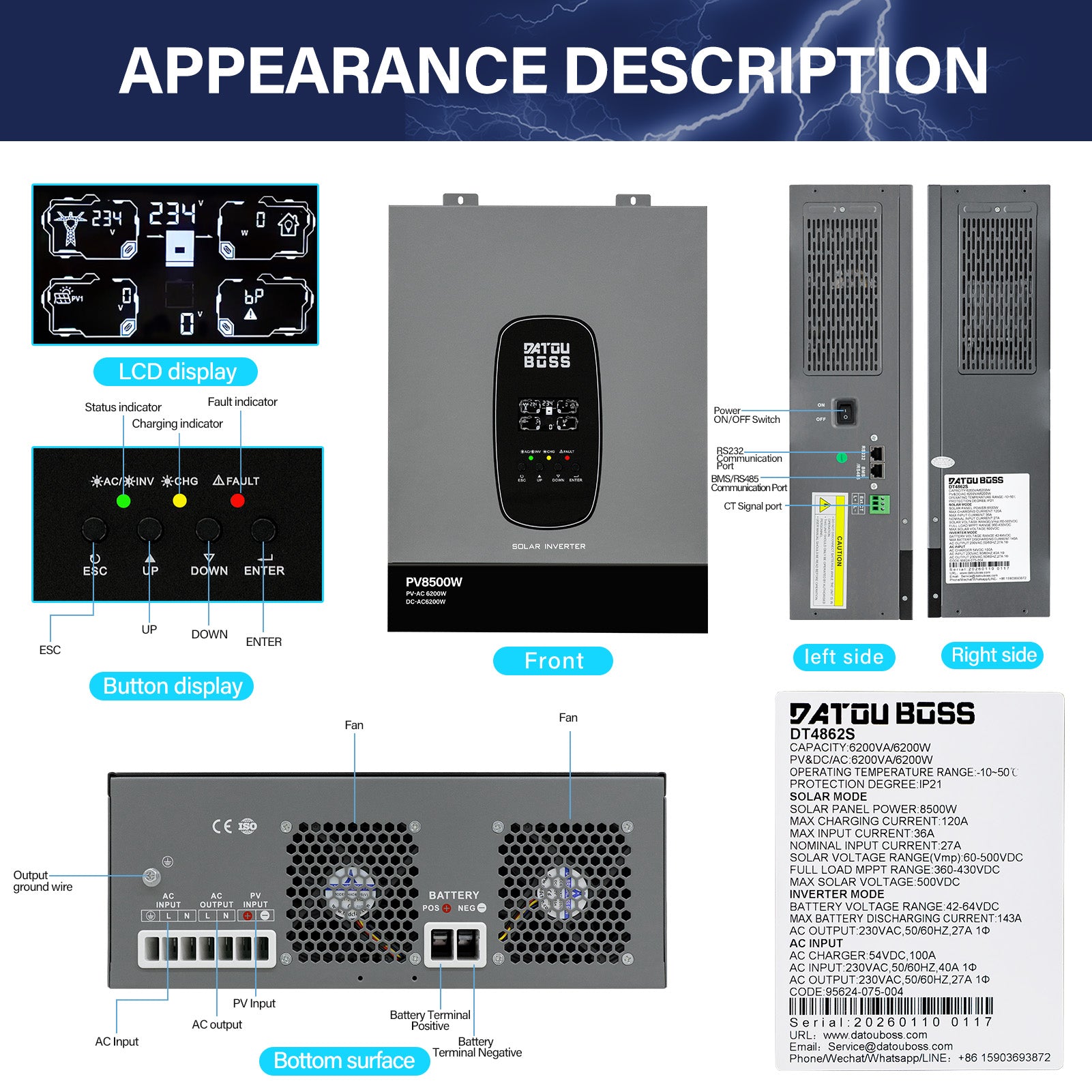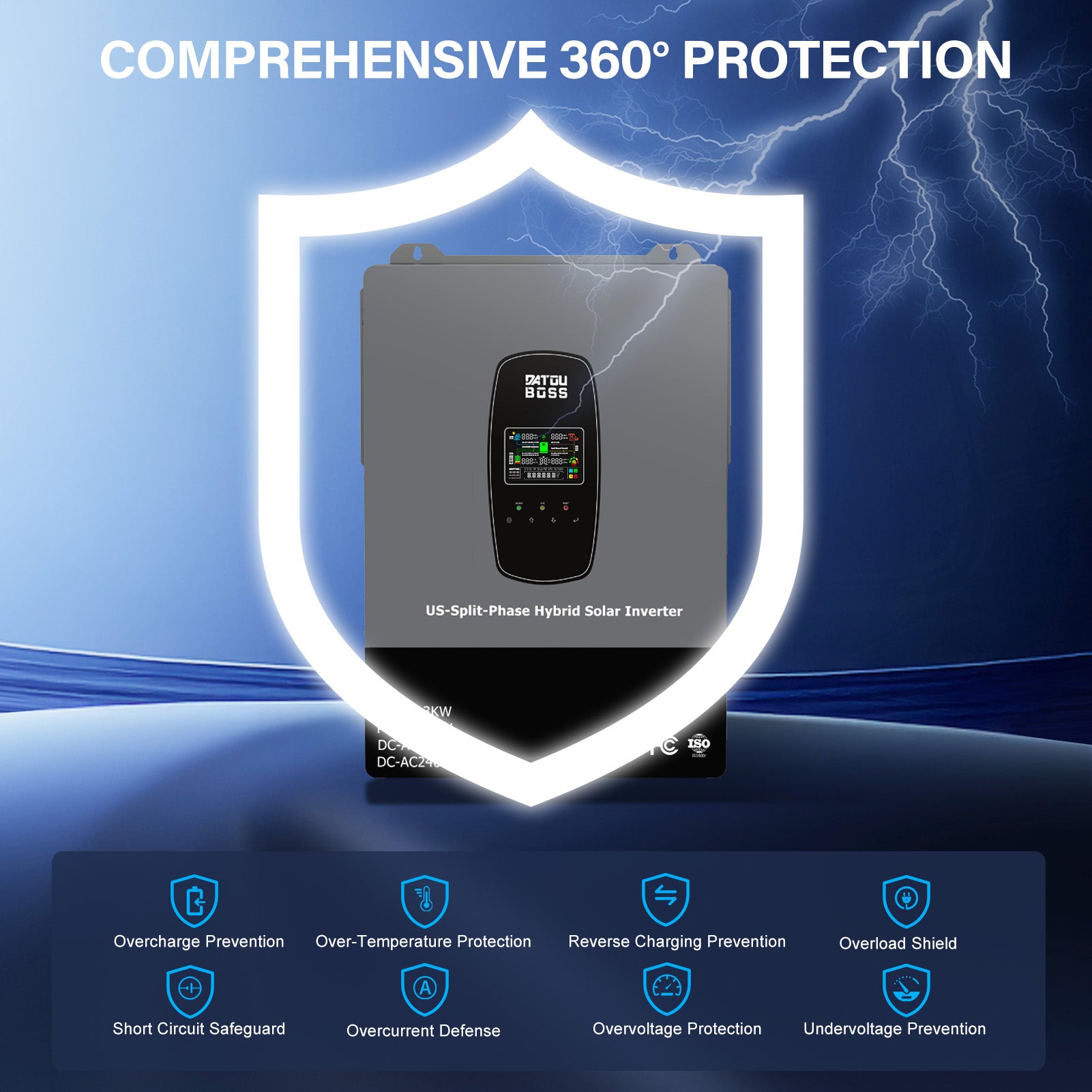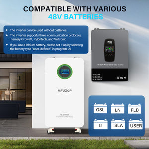 DATOUBOSS 6200W Solar Hybrid Inverter 48VDC till 230VAC, 120A MPPT, 8500W PV-ingång, batterifri drift, BMS-skydd, 27A PV-ingång, blixtnedslag & Anti-Backflow Protection, Off-Grid-kompatibel(Compatible) WiFi-kompatibel 0